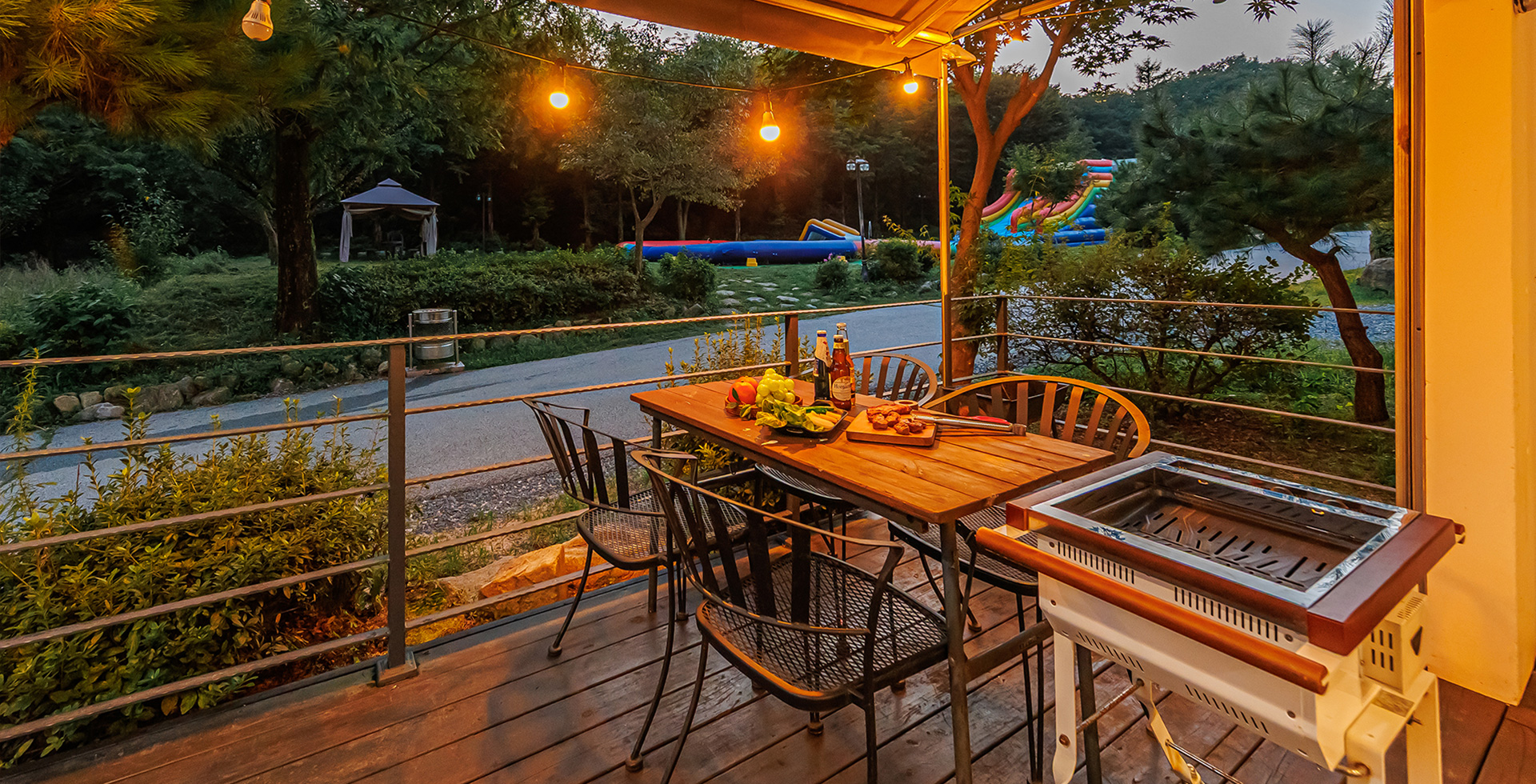 복층형/침대룸A(1층) + 침대B(2층) + 거실 겸 주방 + 화장실1 + 정글짐(2층) + 개별스파 + 테라스바베큐 / 키즈룸