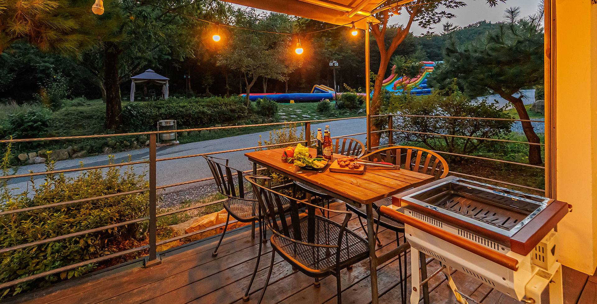 복층형/침대룸A(1층) + 침대B(2층) + 거실 겸 주방 + 화장실1 + 정글짐(2층) + 개별수영장 + 테라스바베큐 /키즈룸